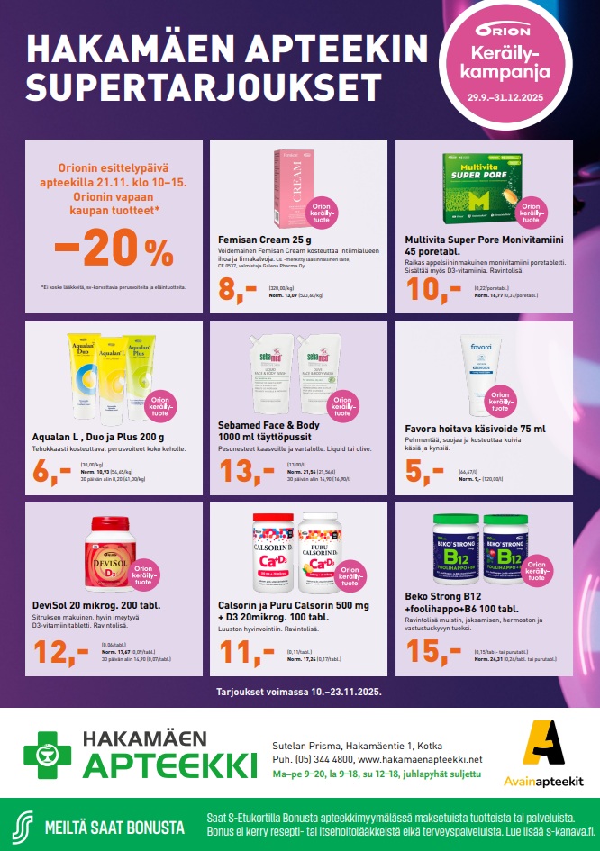 Marraskuussa apteekkimme on täynnä supertarjouksia! Nyt ei kannata jättää tilaisuutta hyödyntämättä.
